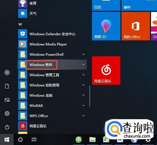 弹出的界面,我们下滑中间的界面,然后我们找到windows附件,之后我们点击打开它;