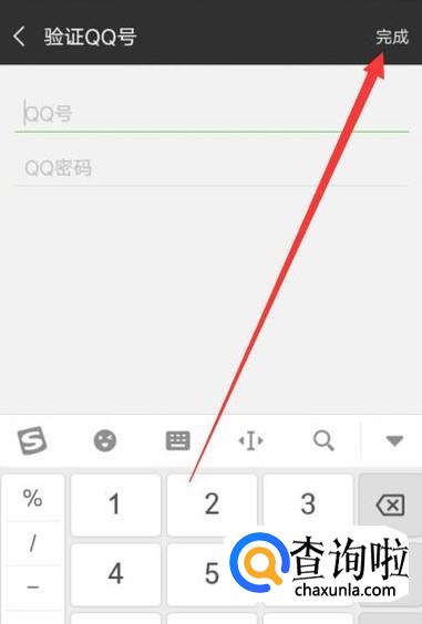 填写绑定的QQ帐号和密码,然后点击“完成”即可,如图所示。