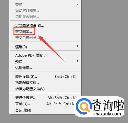设置好之后我们在新建的文件内将对角线连接起来,然后再在编辑菜单里找到定义图案选项,如图所示: