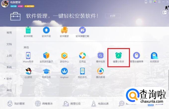 进入工具箱界面后,向下滑动,找到并点击“健康小助手”选项。
