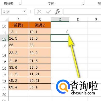 下面单元格即得到相应的结果,结果不为0的;那么,所对应的两组数据就是不同