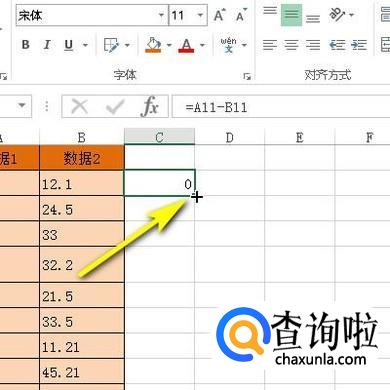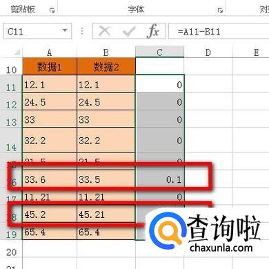 我们以B列为辅助列;在C11单元格输入:=A11-B11