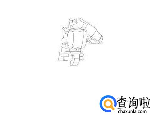 先画出变形金刚的头部,再在头部下面画出变形金刚的身体,如图所示: