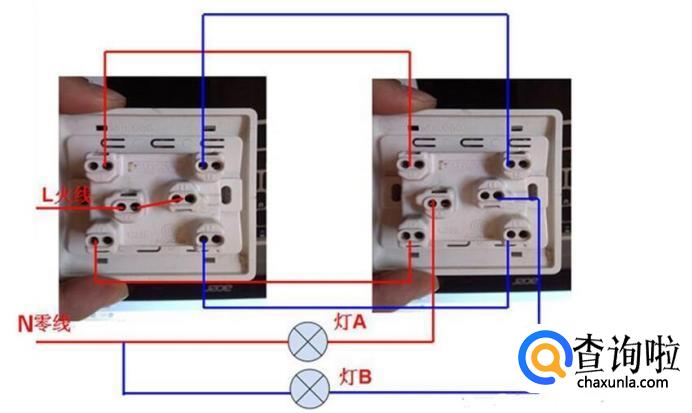 3、两个开关都入火线,而且接于上接线端(或者下接线端),但不能接于中间的接线端。