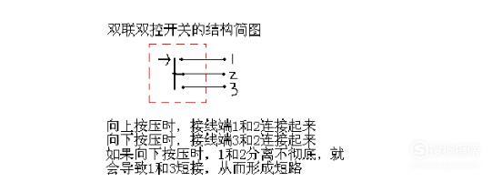 双控开关实际上就是两个单刀双掷开关串联起来后再接入电路。每个单刀双掷开关有三个接线端,分别连着两个触点和一个刀。