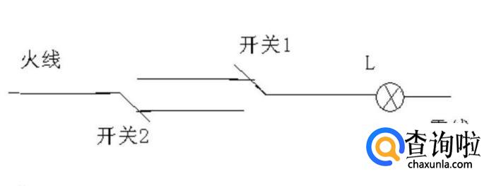 这样当开关1和2的刀同时打向各自触点1或同时打向触点2时,电路接通,则灯亮。若两开关的刀一个打向触点1而另一个打向触点2时,电路不通,则灯灭。因此两个开关都可以控制灯。