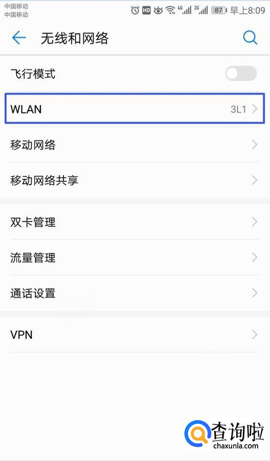 之后点击WLAN;