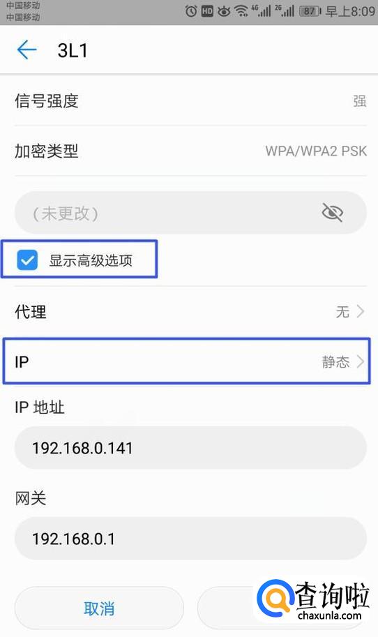之后我们将显示高级选项给勾选上,然后我们点击IP;