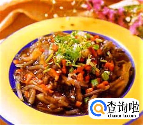 山芋粉制作而成,加上鸡汤鸡肉火腿等为辅料,做出来的烩素鱼皮味道非常鲜美,而且很有营养哦。