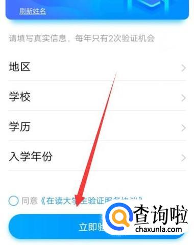 进入之后,填写学生相关信息,点击“立即验证”即可,如图所示。