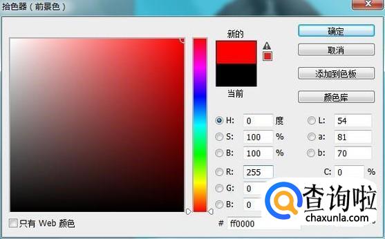 得到背景选区之后在找到前景与背景选项,点击前景色在拾色器内选择红色,如图所示: