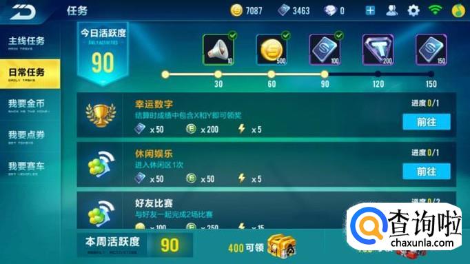获得点券最多的方式当属每日任务了,当活跃度为90的时候可以获得100点券,当活跃度为150的时候即可获得150的点券,周活跃度达到400即可获得150点券,周活跃度达到750即可获得300点券。当然还有剧情模式,这是一个既可以获得大量经验又可以获得大量点券的方法,剧情模式也需要我们等级解锁哦,相信你看完这些方法之后便可以获得更多的点券,这样就可以购买自己喜欢的装扮与赛车咯。