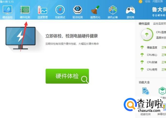 之后打开鲁大师,检测一下电脑的硬件。