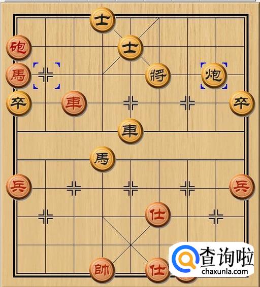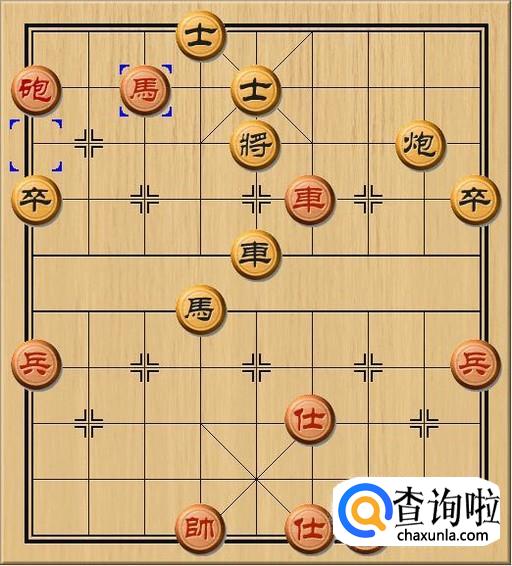 由于黑方中士的阻挡,黑方老将不能退后。于是,黑方将5平4,黑方老将向左移动一步,避开红方马的攻击。如图所示。