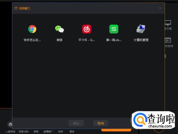 选择窗口点入,即可以显示你电脑上打开的所有页面,选中想要直播的链接点击确认即可将其放入直播列表。