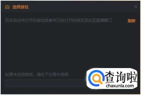 如果你想直播的是一款新游戏还没有直播过,就需要点击游戏就会看到如下图示,直接选入新游戏即可。
