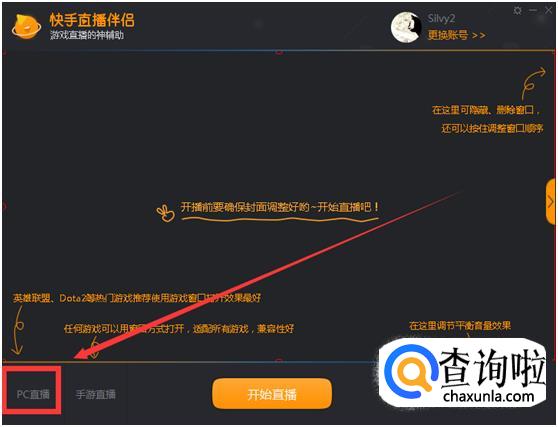 点击下方“开始直播”,即可用电脑进行快手直播。