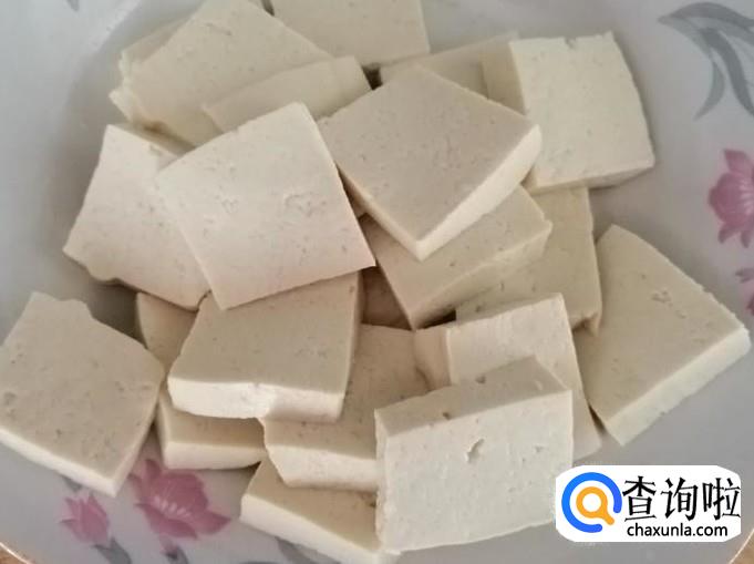 适量新鲜的豆腐,用刀切成豆腐块,大小薄厚根据自己喜好来定,但不要太厚,太厚不容易入味。