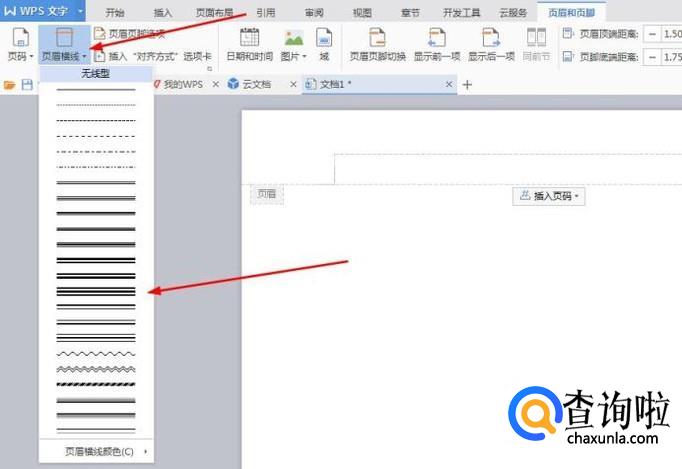 然后我们点击左边的“页眉横线”按钮,展开菜单栏目。