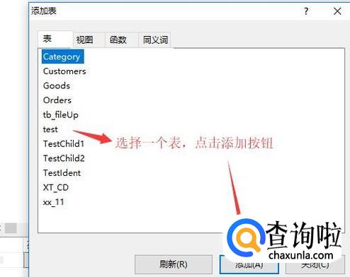 点击新建视图以后,软件会自动弹出添加表的选择框,如下图所示,选择要添加的数据表,然后点击添加按钮