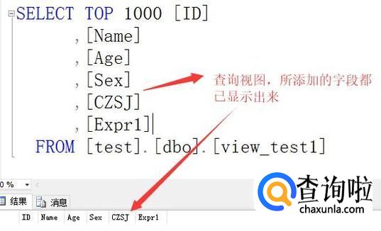 最后我们查询建好的视图,你会发现我们刚才选择的字段都已经添加到视图中了,如下图所示