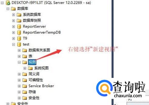首先打开SQL Server Management管理工具,打开一个数据库,选择数据库下面的视图,右键单击,选择“新建视图”,如下图所示