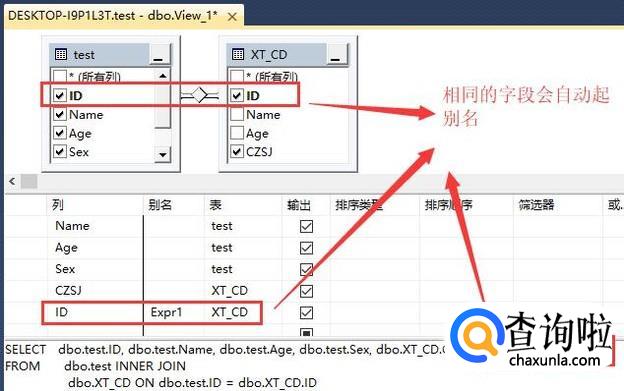 需要注意的是如果两个表中有相同的字段名称的话,软件会自动给字段起别名,如下图所示