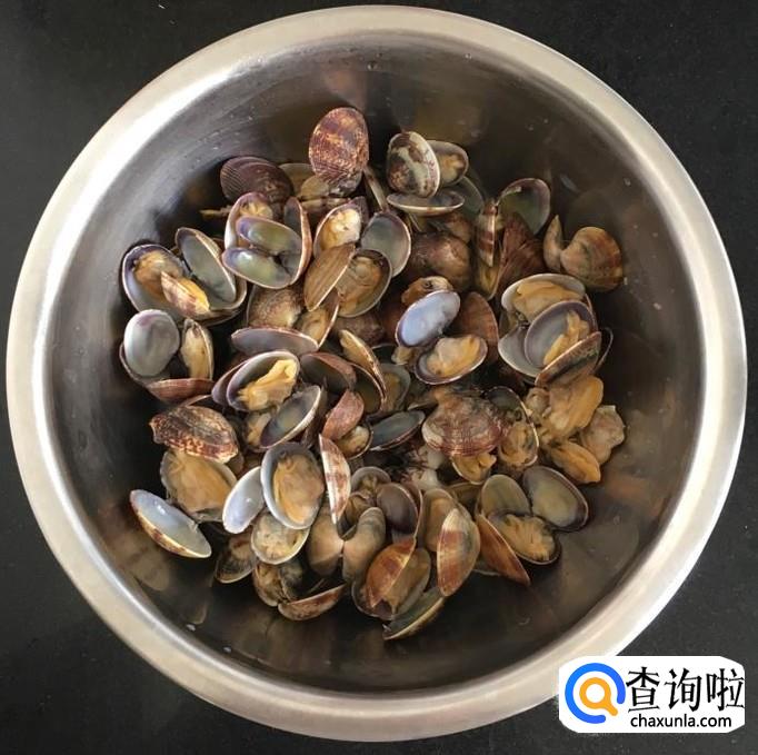 鲜活的蛤蜊反复冲洗干净外壳的杂质,控干水分放入锅中煮至贝壳张开放凉后取蛤蜊肉,原汤放好千万不要扔掉。