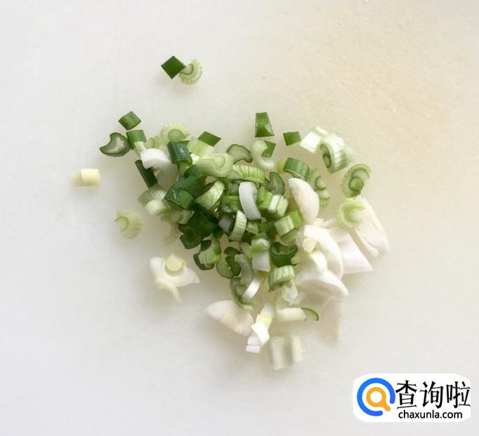 大葱剥去外皮洗净后切成葱花,鸡蛋两个打入碗中用筷子搅拌均匀成蛋液
