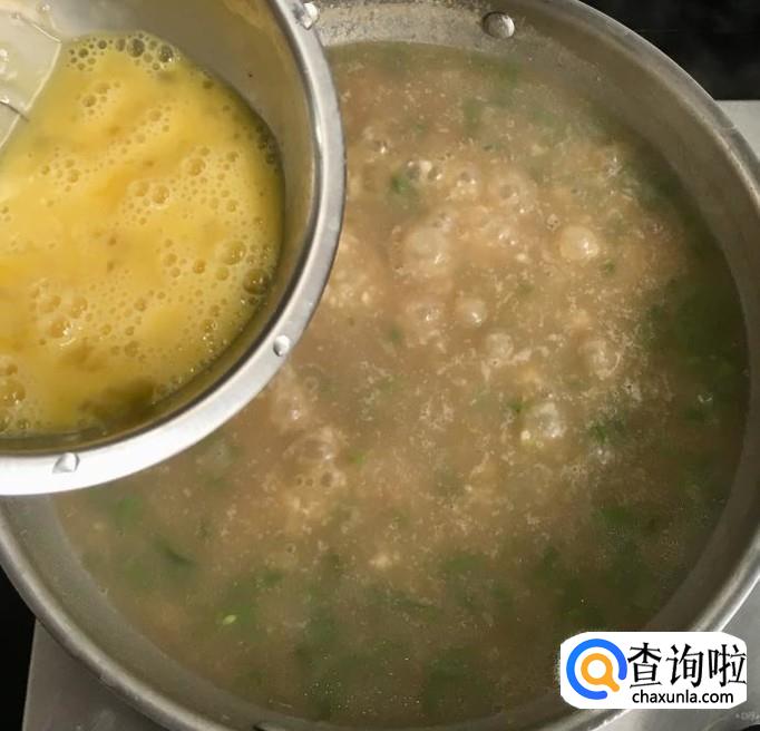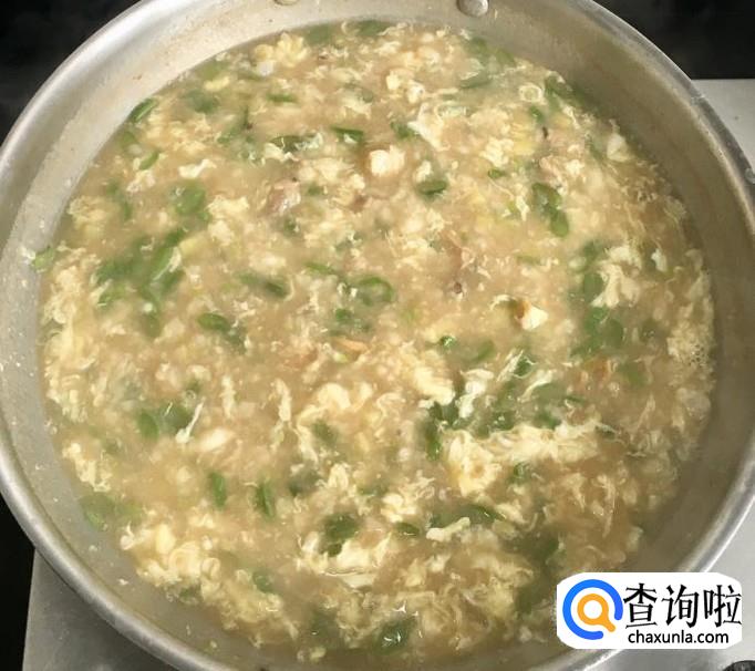 煮至土豆、豆角断生后加入适量的盐调味儿,撒入面疙瘩用汤勺搅拌均匀后再淋入鸡蛋液