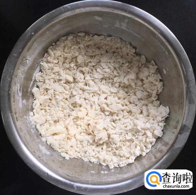 取适量的面粉放入容器中一边加水一边搅拌均匀成面疙瘩,切记水要分多次一点一点的加入