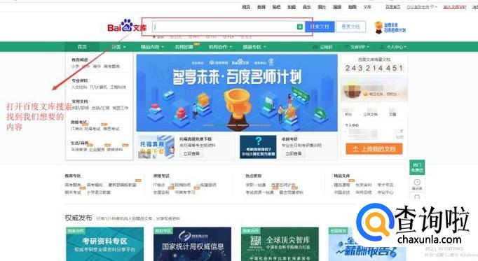 百度搜索百度文库或者我们直接打开百度文库,然后在百度文库的搜索框中搜索我们想要的内容。找到我们想要的文库内容。