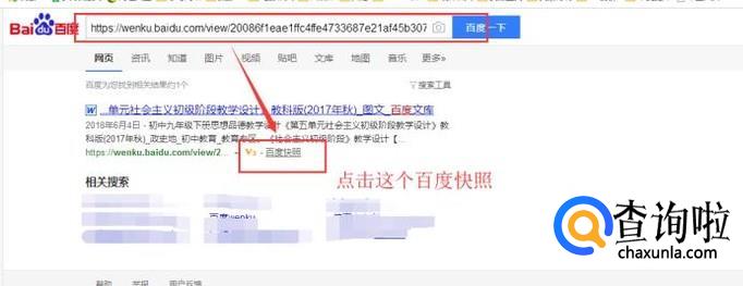 回车进行搜索,会出现一个搜索结果,我们在搜索结果下方会看到有一个百度快照的字样,我们用鼠标点击这个百度快照。