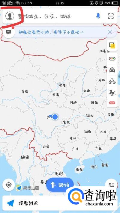 进入高德地图之后,选择点击左上角的个人中心处。