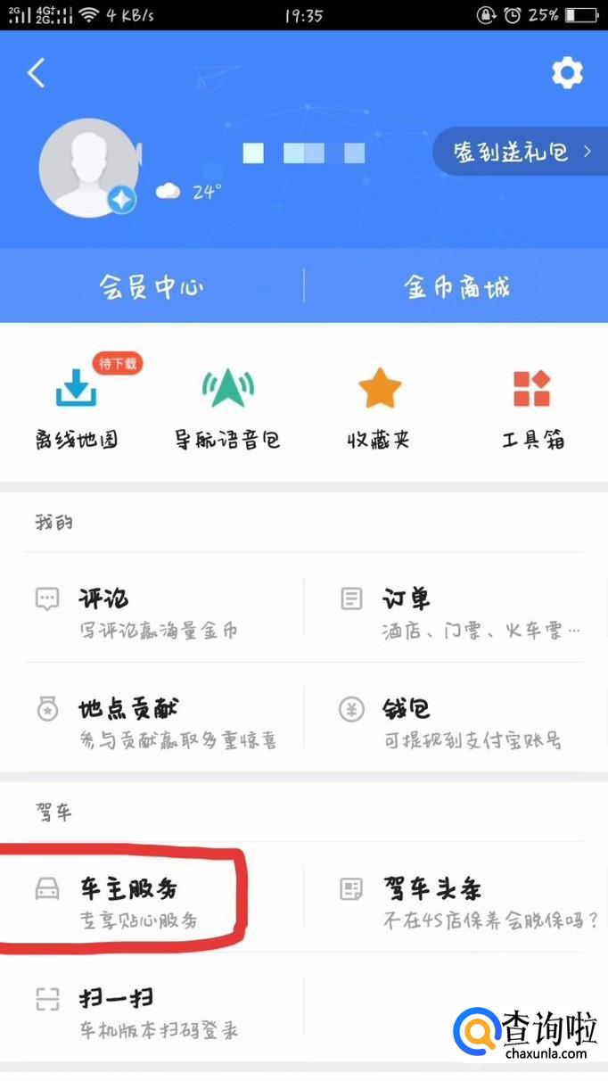 进入个人中心之后,需要点击左侧的“车主服务”。