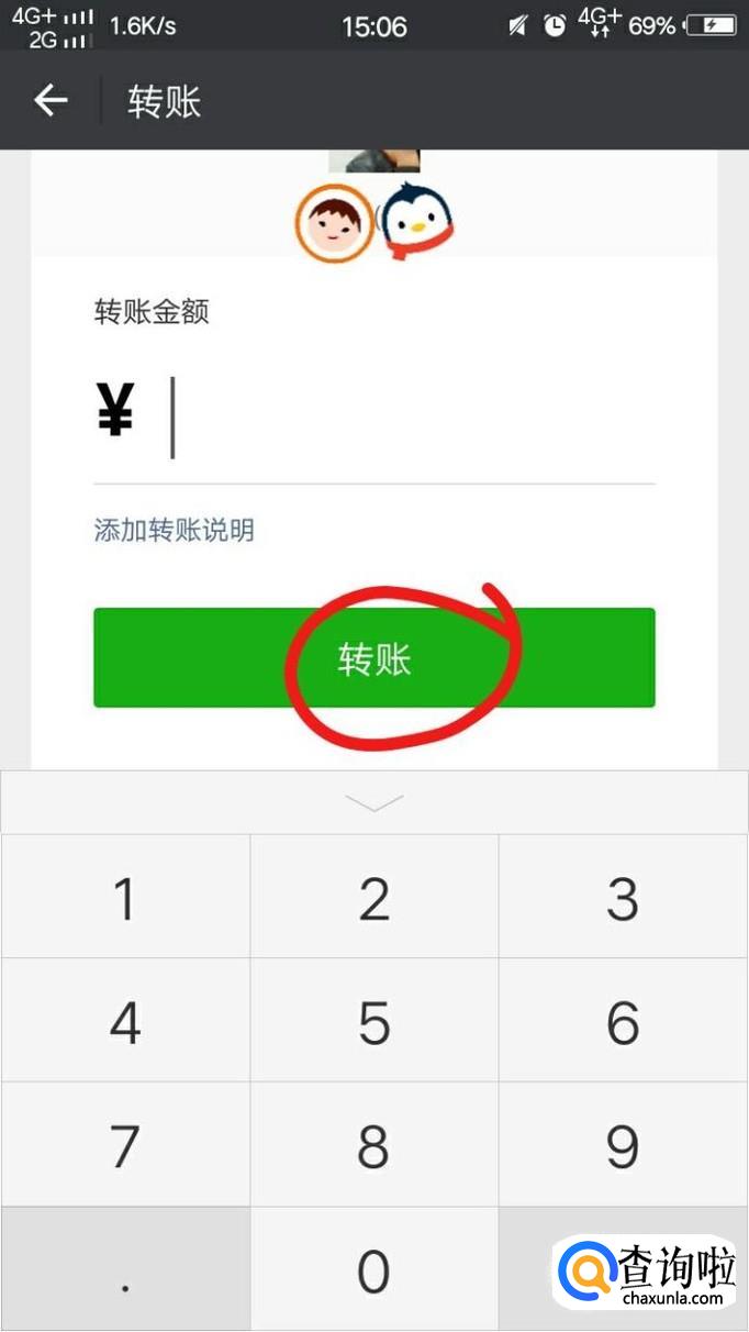 最后,我们点击右下角的加号,然后点击“转账”,输入你要转账的金额,再点击“转账”输入密码即可