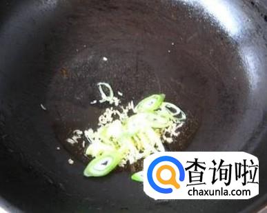 在油锅中放入葱丝,炝出香味。