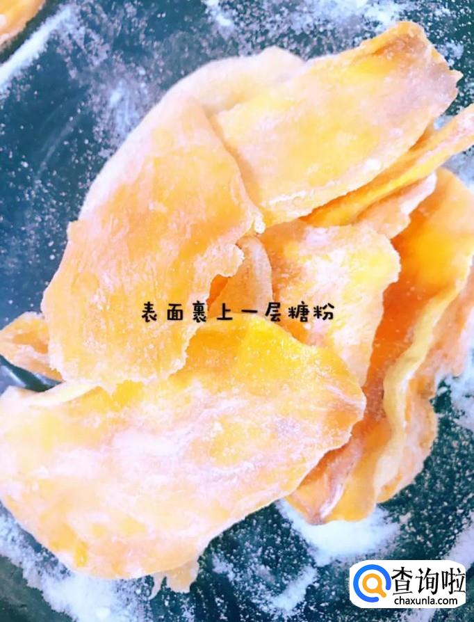 接着在烤好的芒果干上裹上一层糖粉,如下图所示。