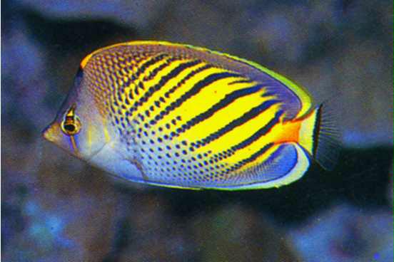 蝴蝶鱼属蝶鱼科,主要分布于太平洋、东非至日本等海域。它的外形就与陆地上的蝴蝶一样,有着五彩缤纷的图案。