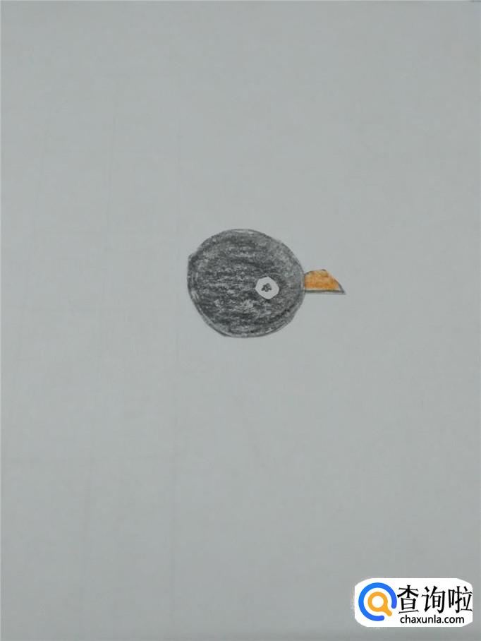 把小圆粘在头的右侧,并用铅笔在上面点一个黑点,表示眼睛和眼珠。