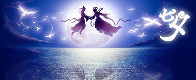 在晴朗的夏秋之夜,天上繁星闪耀,一道银河横贯南北,银河的东西两岸,各有一颗闪亮的星星,隔河相望,遥遥相对,那就是牵牛星和织女星。婺女星后来衍化成神话中的女神,民间即称为七姐、天仙娘娘、七娘妈等,是编织云彩、情侣、妇女、儿童的保护神。世间无数的有情男女都会在七夕夜晚对着星空向织女祈祷自己的姻缘美满。