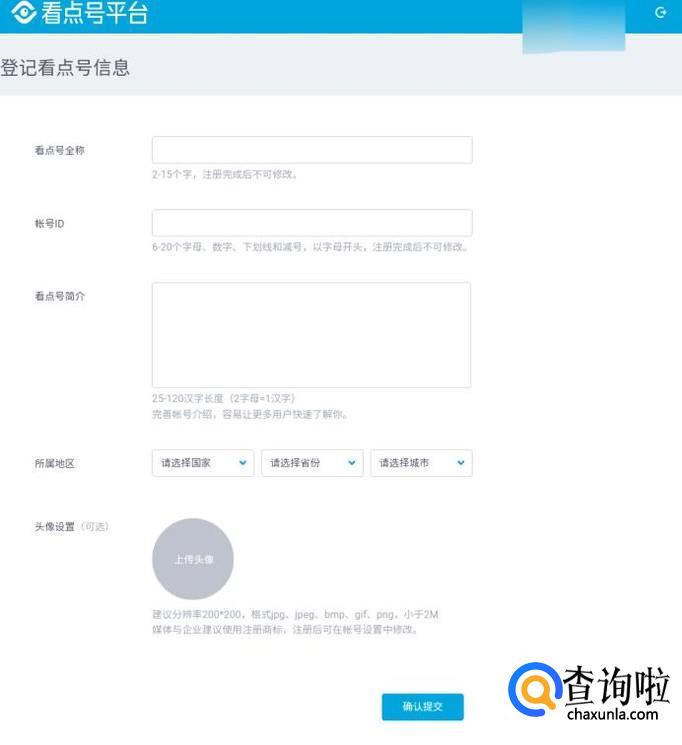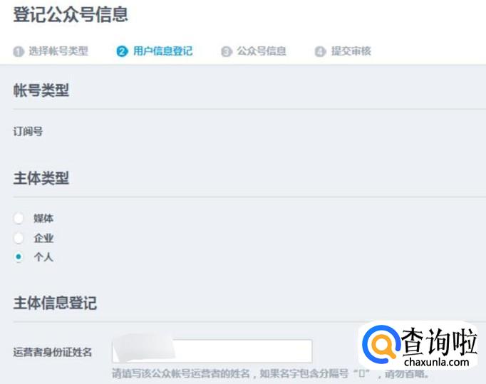 然后我们需要填写相关的信息来登记看点号。