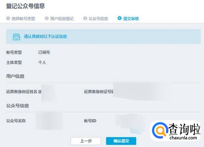 再次确认一下你的相关信息,如确认无误即可点击确认提交。