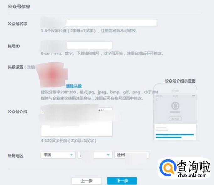 填写你创建的公众号的相关信息。