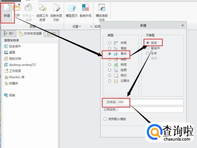 打开creo软件,创建一个新的零件,创建过程如图所示。