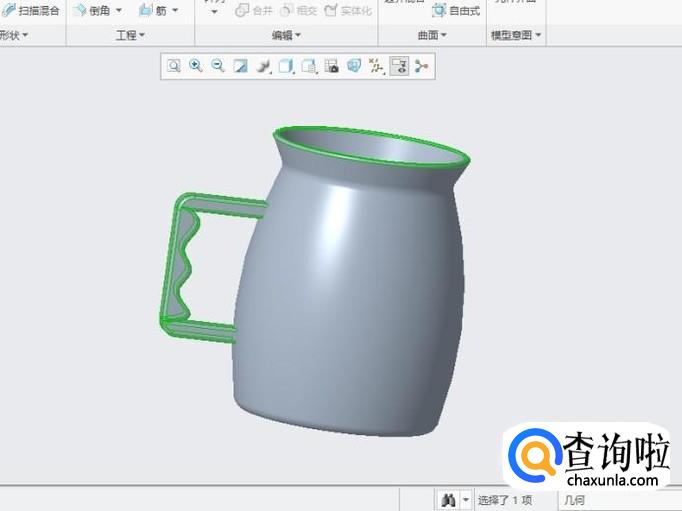 完成水杯把手的创建,如图所示。