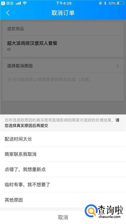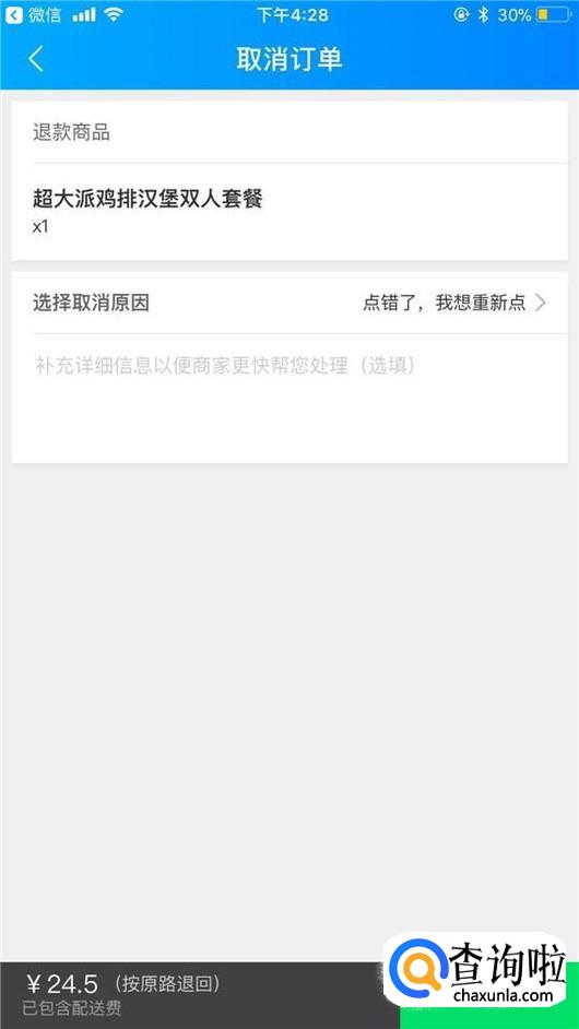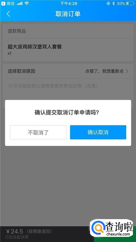 当我们在饿了么下单并发现下错单的时候,可以点击取消订单,如下图所示。