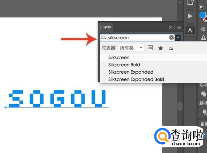 文本信息输入完成之后,将字体设置为“silkscreen”,如果没有的话在网上搜索下载安装就行了。