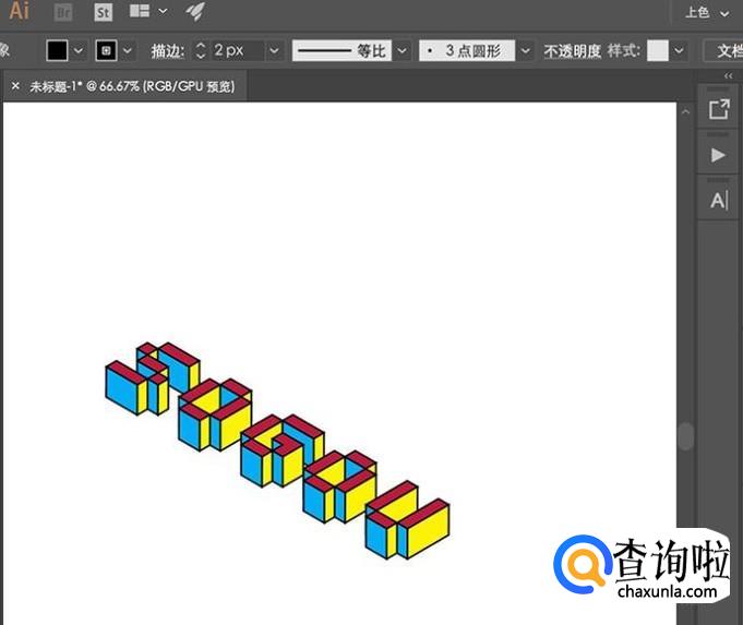 最后对不同的相同面进行颜色调整,然后整体加上一个描边,立体积木字体就做好了。