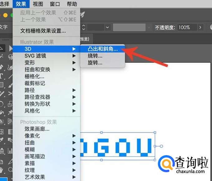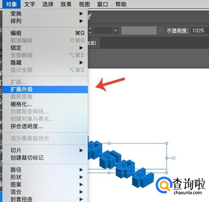 进行3D效果之后还要对单面进行调整,选择图层,点击“对象-扩展外观”